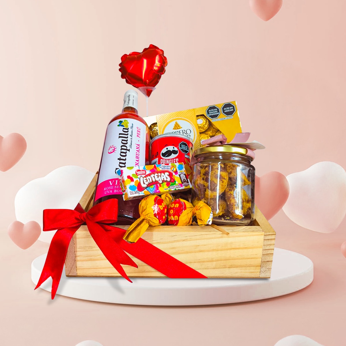 *Puedes escoger entre vino TINTO, ROSÉ, BLANCO o puedes cambiarlo por Cremas con pisco: Algarrobina, Mokaccino, Café, o Macerado de maracuyá de 500 ml. (Aplican recargos en cremas y macerados)